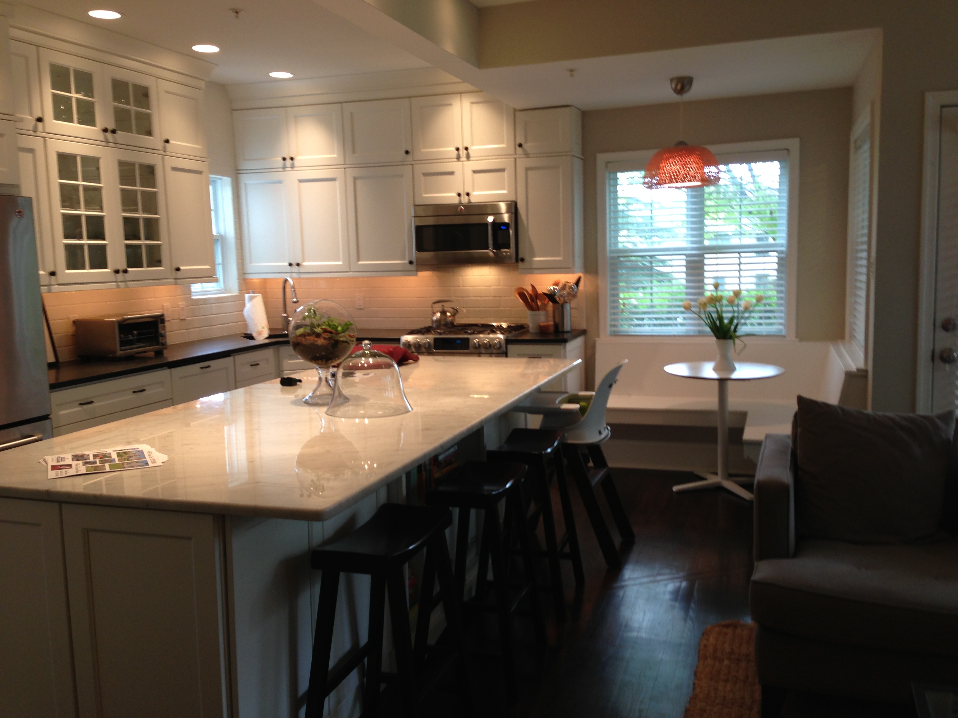 This week I saw a wonderfully decorated minimalist/well designed/relaxed/patterned out accented house. It was so well done that I was convinced that it was staged- down to the picture perfect gallery wall which I wrongly assumed still had the photos that came in the frame! There were great printed pillows in chevron and ikat, beautifully framed prints throughout, a wonderfull gallery wall. If anyone is looking to move to a great 3 bedroom single family home in the West Chester Borough located a 15 minute walk to downtown- I think this one will go fast!!!!